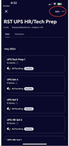 Once you click the open button you are now in the Quizlet app. Next request to join the class.